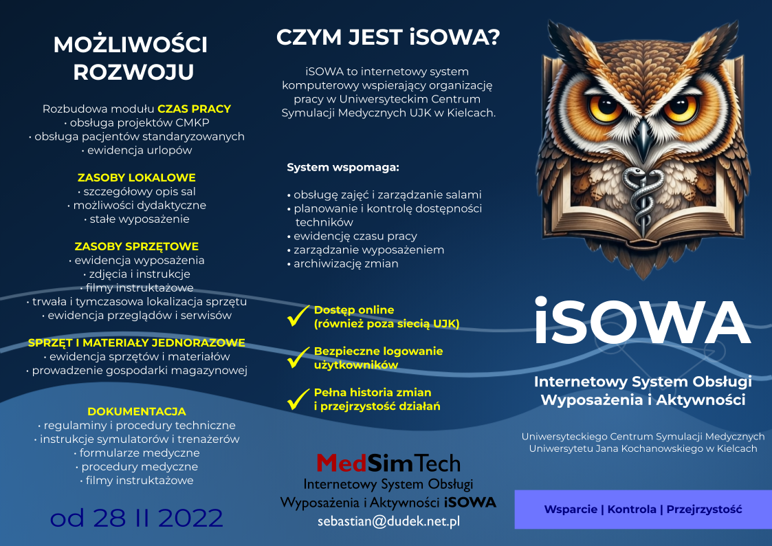 Jakiś czas temu stworzyłem dwa systemy informatyczne wspierające zarówno organizację pracy, jak i proces dydaktyczny w centrach symulacji medycznych: iSOWA oraz UJKlides.