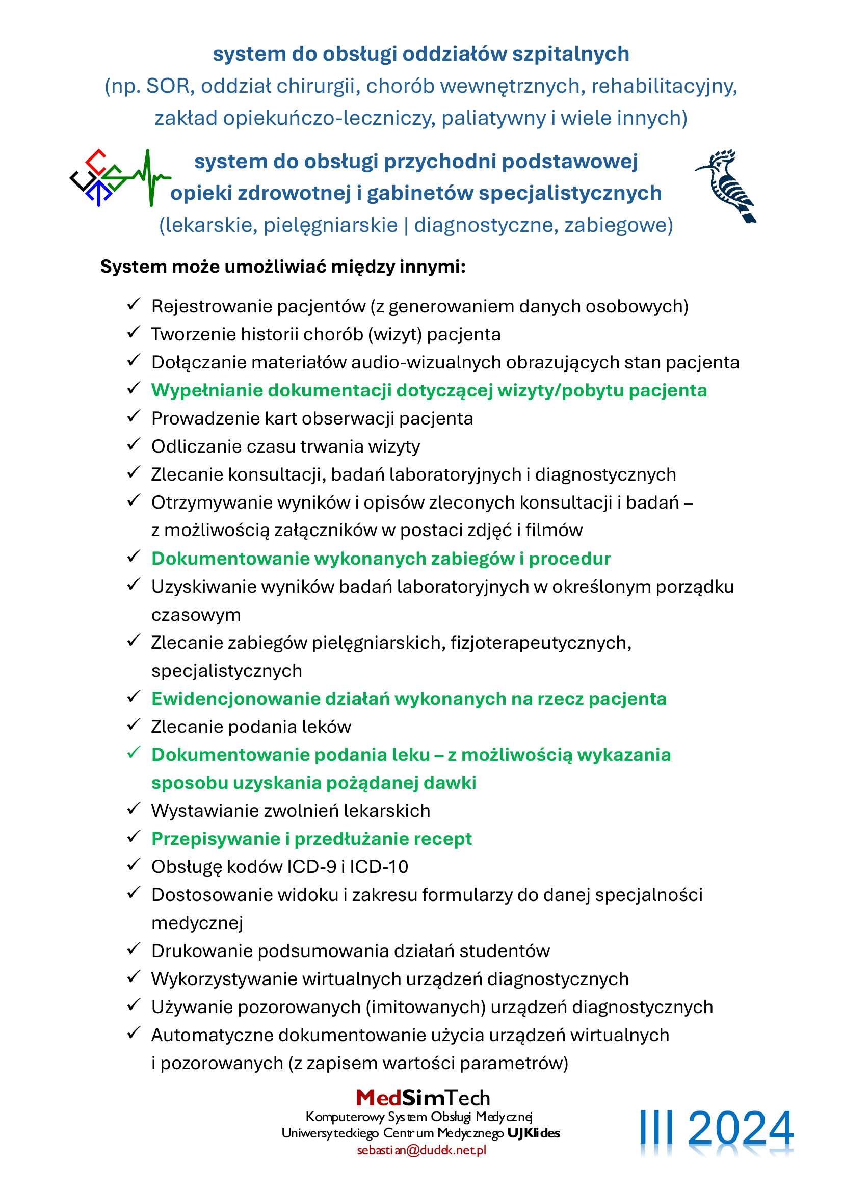 Rozwiązania te powstały w oparciu o doświadczenia praktyczne, obserwację pracy różnych ośrodków oraz wnioski z wizyt studyjnych. Ich architektura i założenia wskazują na możliwość szerokiego zastosowania oraz dalszego rozwoju w różnych środowiskach symulacji medycznej.